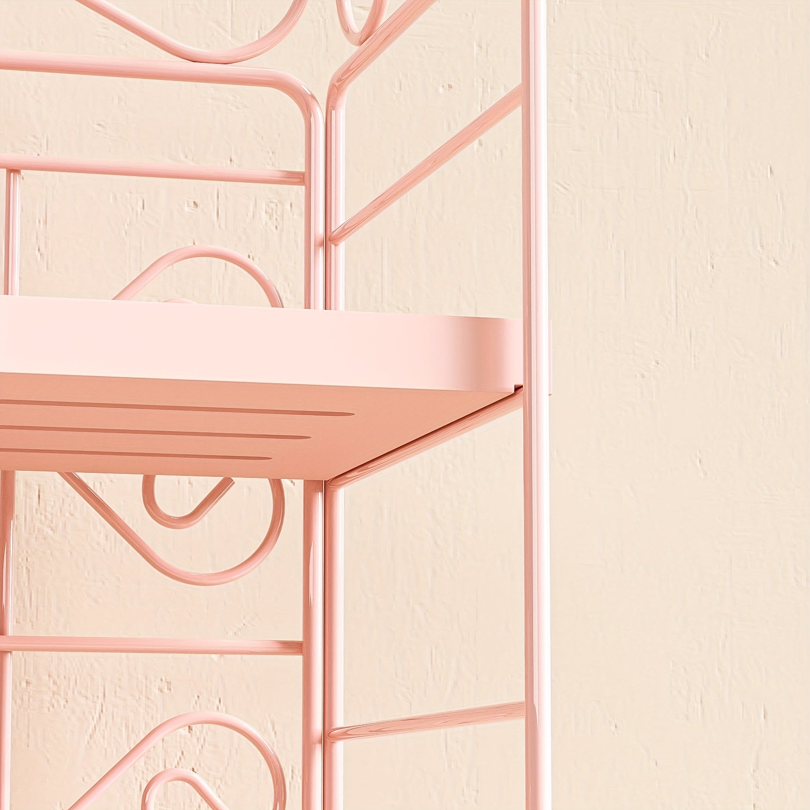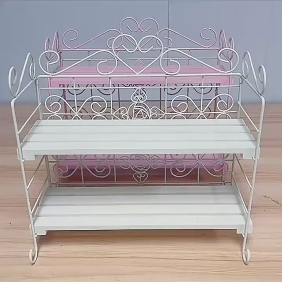 2- Shelf Foldable Metal/Wood Storage Organizer For Bedroom Kitchen Bathroom Living Room Garden Storage Shelf, White/Pink, Utility Racks