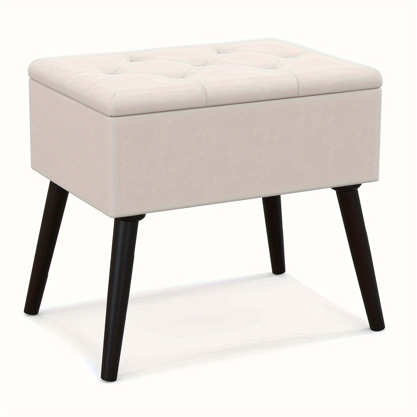 20" Ottoman With Storage - Makeup Vanity Bench With Flip Top Storage, Wood Legs, Upholstered Tufted Storage Ottoman Side Table, Footrest Entryway Stool For Bedroom Living Room.