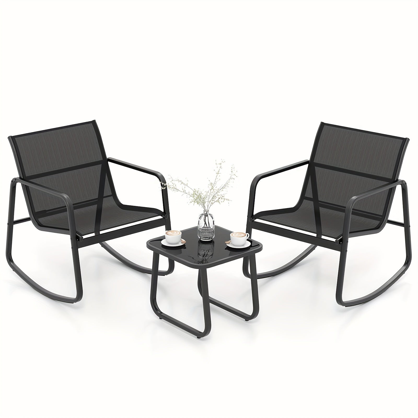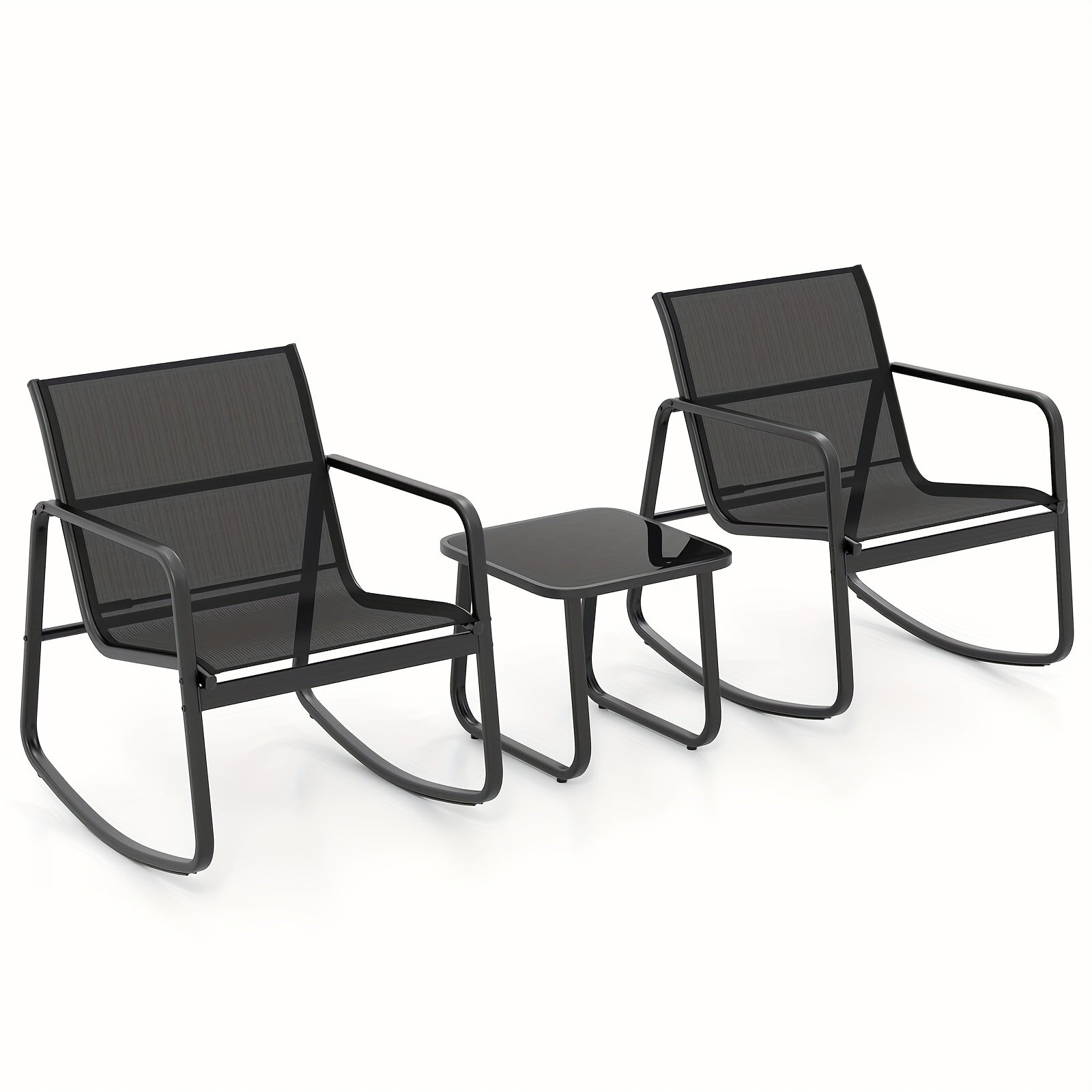 3pcs/set COSTWAY Patio Rocking Chairs Set - 2 Rocking Bistro Chairs & Glass-Top Table For Porch