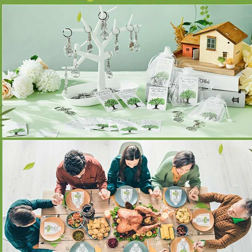 40 Sets Tree Of Life Key Rings Family Party Decorative Keychain Bulk Set with Card And Organza Pouch, Perfect Gift for Family Day