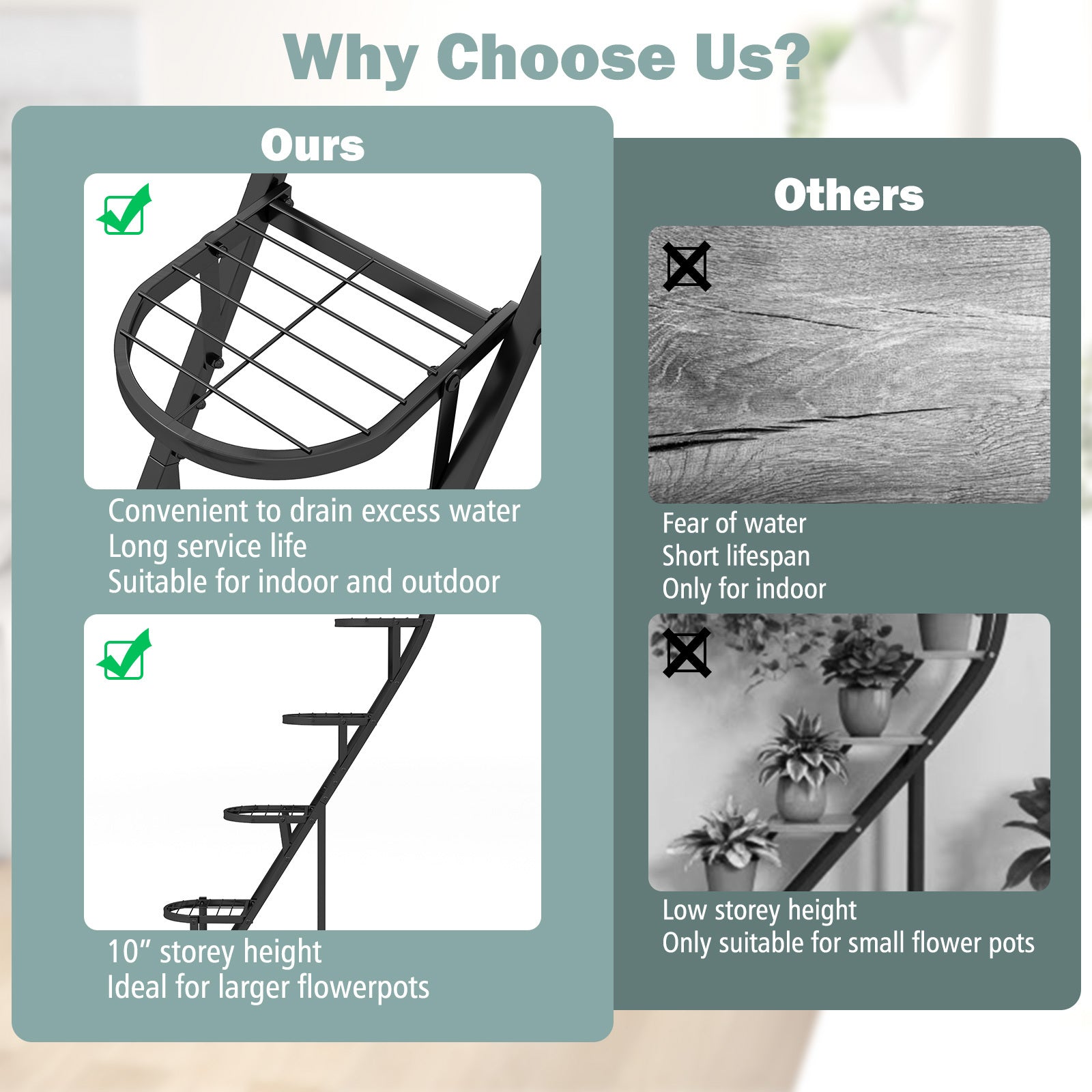 5 Tier Metal Plant Stand, Heart-shaped Ladder Plant Holder w/Hanging Hook for Multiple Plants, Indoor Corner Flower Rack for Home Decor, Patio, Balcony, Garden, Black/White/Pink & Blue