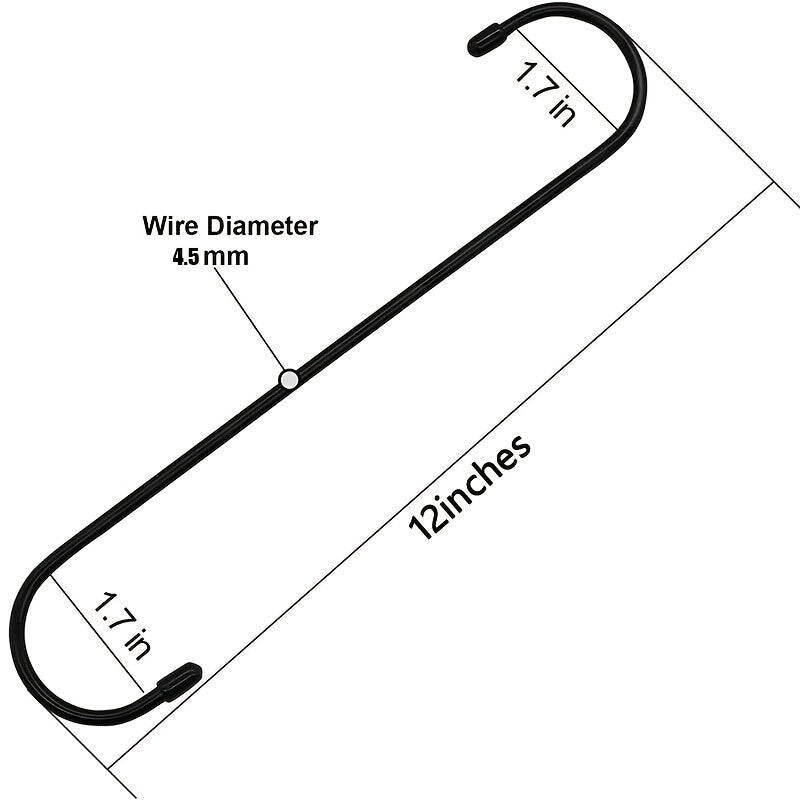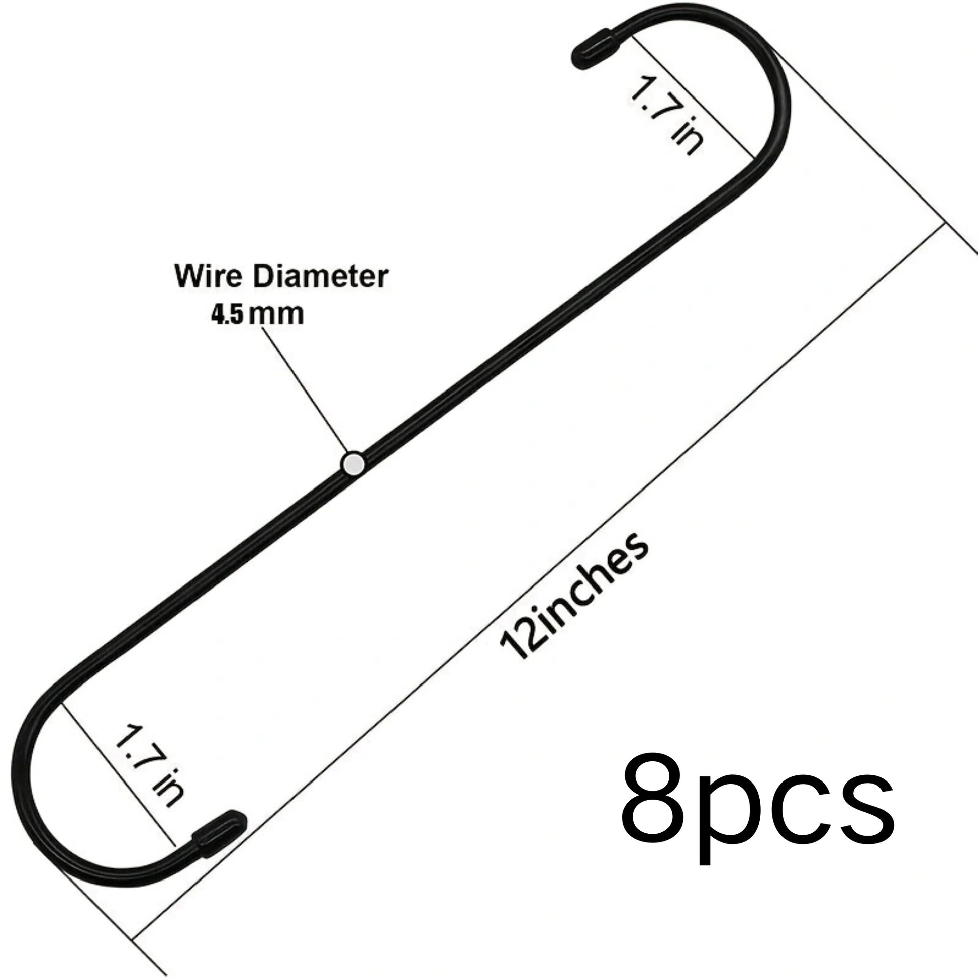 6/8/12/16/24/32pcs 12 Inch Large S Hooks for Hanging Plants Black Extra Matel Heavy Duty Hook, Utility Hooks