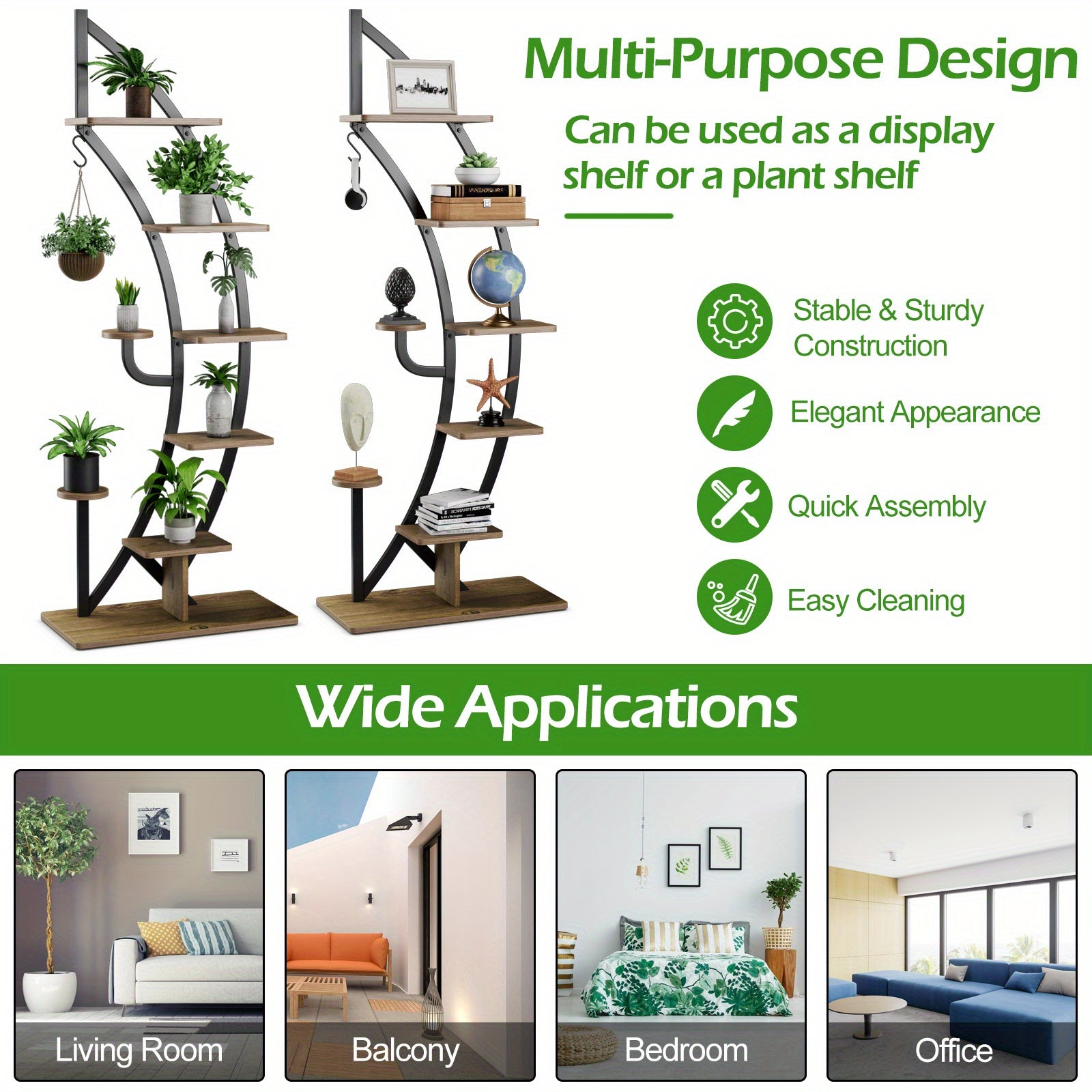 6 Tier Metal Plant Stand, Half Moon Shape Ladder Planter Organizer w/Hook, Multifunctional Curved Flower Pot Rack, Indoor Bonsai Display Shelf for Living Room, Bedroom, Balcony