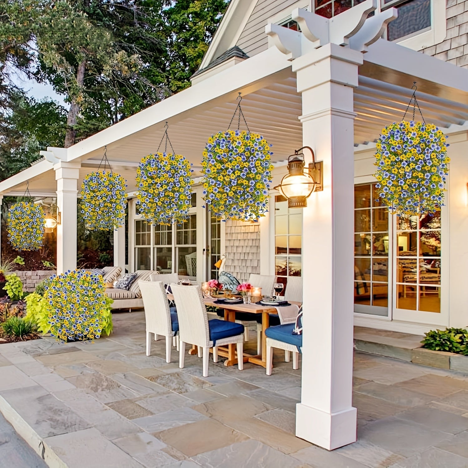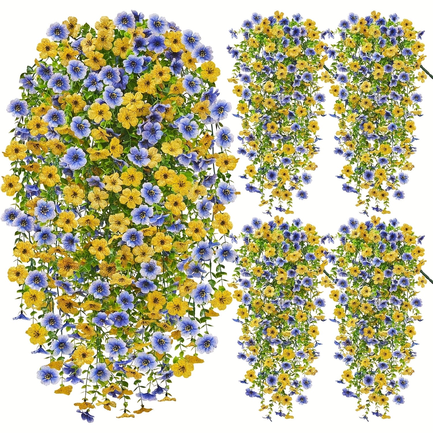 8pcs UV-Resistant Artificial Hanging Vines with Vibrant Blue & Yellow Flowers - Flexible Stems for Easy Shaping, No Maintenance Bohemian Chic Home Decor, Artificial Flowers for Home Decor, Garden Decor, Porch Embellishment, Easy Shaping Vines