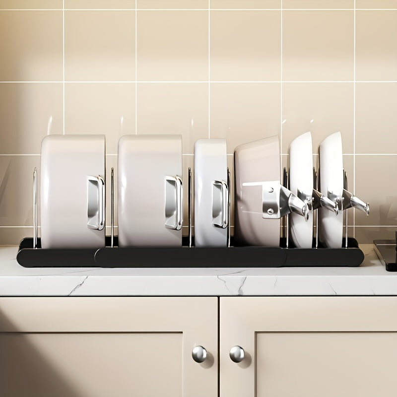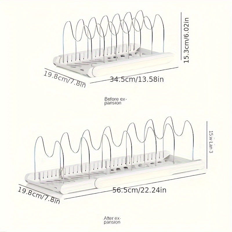 Expandable Pot Lid Organizer Rack, Adjustable Kitchen Cabinet Storage with Drain System, ABS Dishware Tiered Shelf for Cabinet, Countertop, Under Sink Organization Christmas, Halloween Gift