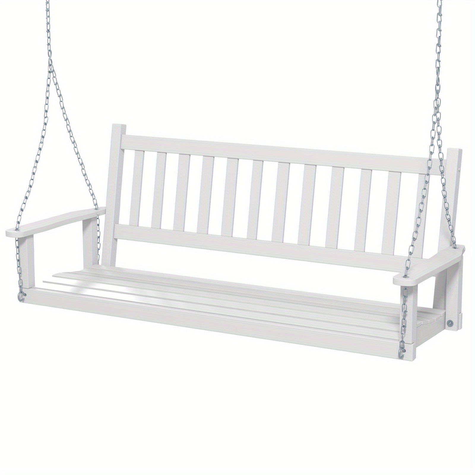 [Heavy Duty Porch Swing] 3-Person Heavy Duty White Wooden Porch Swing - Adjustable Height, Solid Poplar Wood, Galvanized Metal Chains, Slatted Backrest & Curved Seat - Ideal for Patio, Garden, Backyard