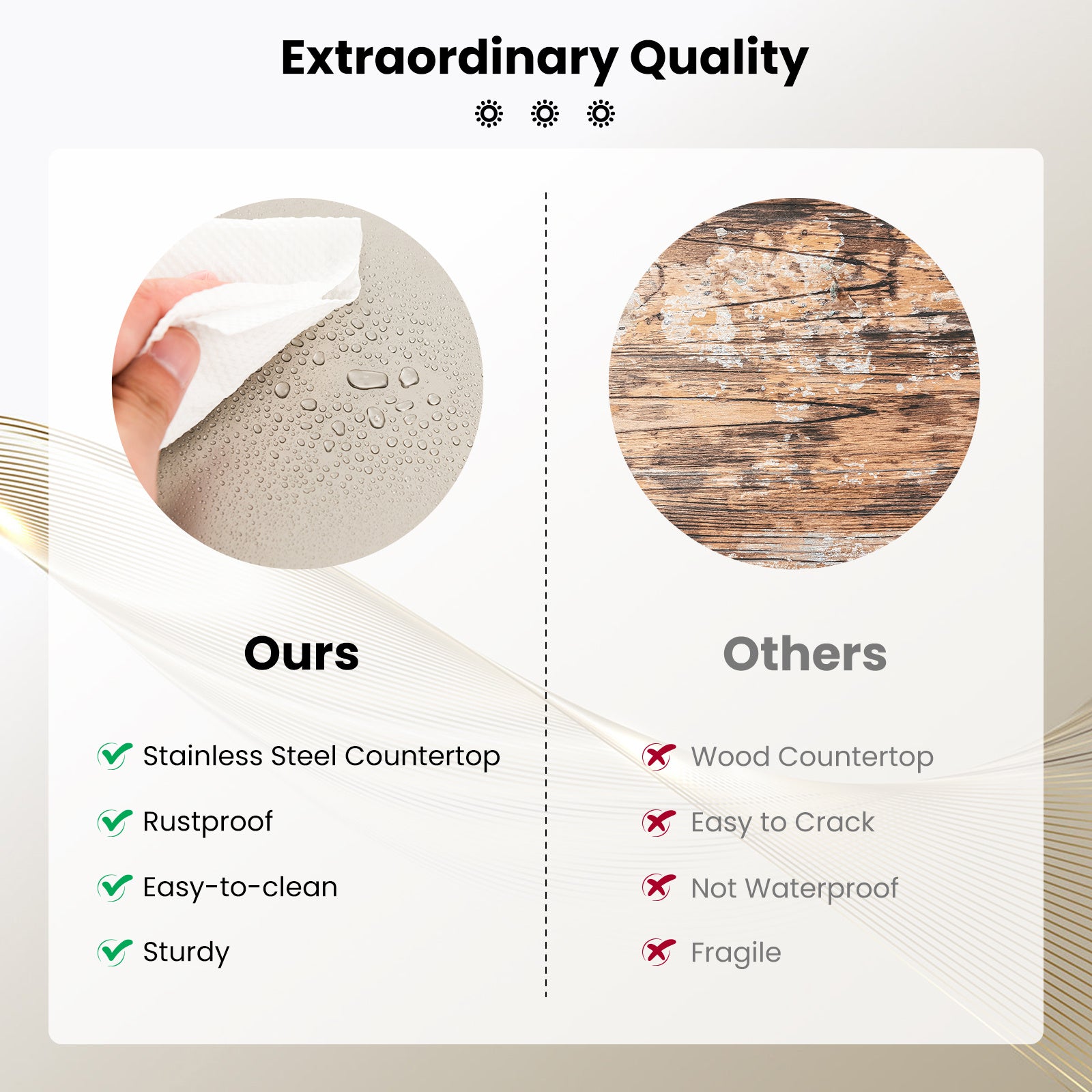 Kitchen Island on Wheels, Rolling Kitchen Cart with Stainless Steel Countertop, Slide-out Metal Wire Basket, Serving Tray, Lockable Casters, Utility Storage Trolley for Kitchen, Dining Room