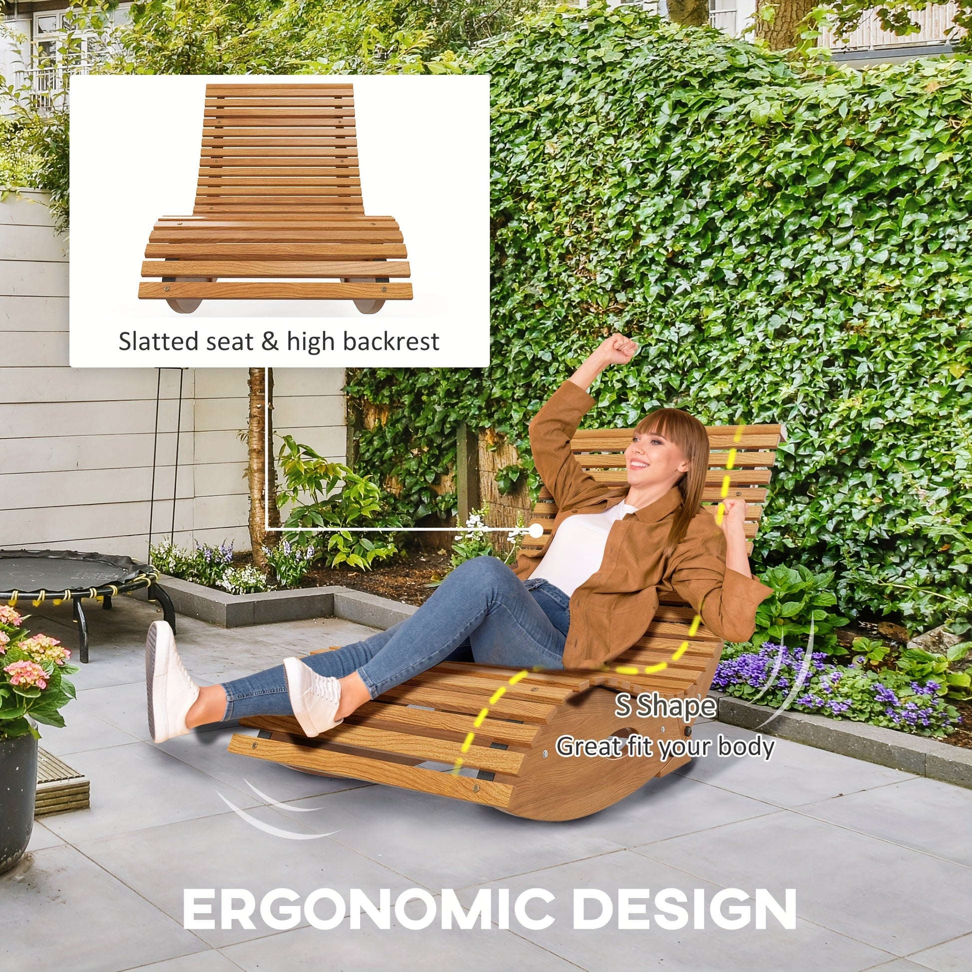 Outsunny Outdoor Rocking Chair with Slatted Seat and High Back, Wooden Rocking Chair with S Shape, Rocking Patio Chair for Backyard, Garden