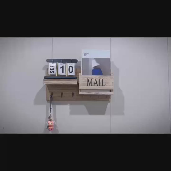 Rustic Solid Wood Wall-Mounted Organizer Shelf - Key Rack with Mail Slot & Multi-Hook Design, Floating Entryway Storage for Home Office, Recycled Wood Decorative Shelf for Keys, Letters, Small Essentials