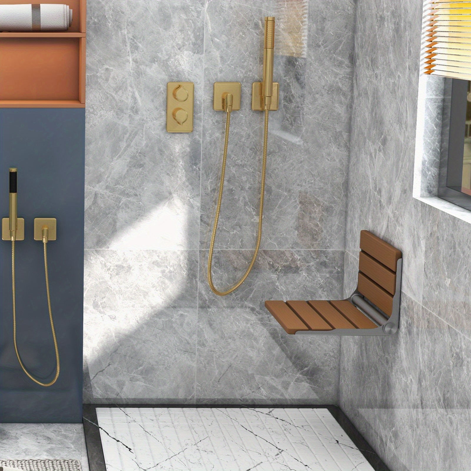 Space-Saving Folding Shower Bench - Sturdy Stainless Steel & HIPS, Wall-Mounted, Brown Wood Grain Design, Supports up to 330 lbs, Ideal for Seniors, Pregnant, Disabled with Easy Installation Kit, Shower Bench for Inside Shower