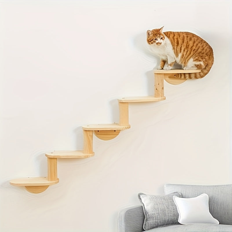 Sturdy Wooden Cat Wall Shelf - 3/5-Level Climbing Ladder & Perch for Indoor Cats, Interactive Play and Exercise Furniture