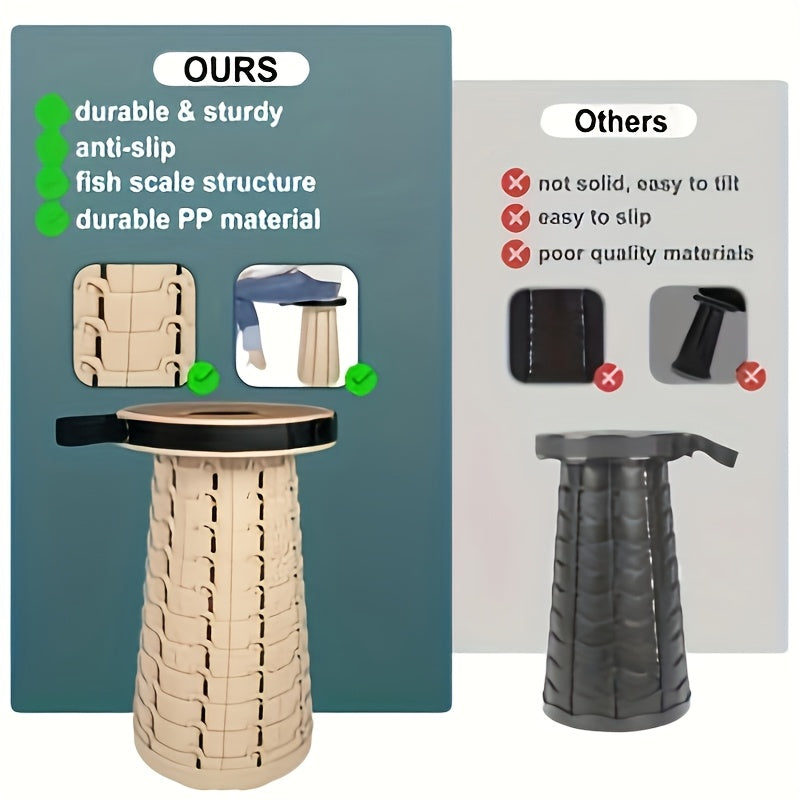 Ultra-Comfort Portable Folding Stool With PU Cushion - 12-Level, 500lb Capacity, Ideal For Camping, Fishing, Hiking & BBQs
