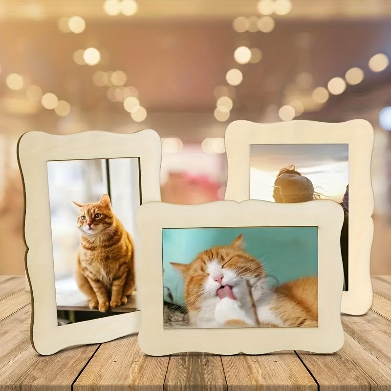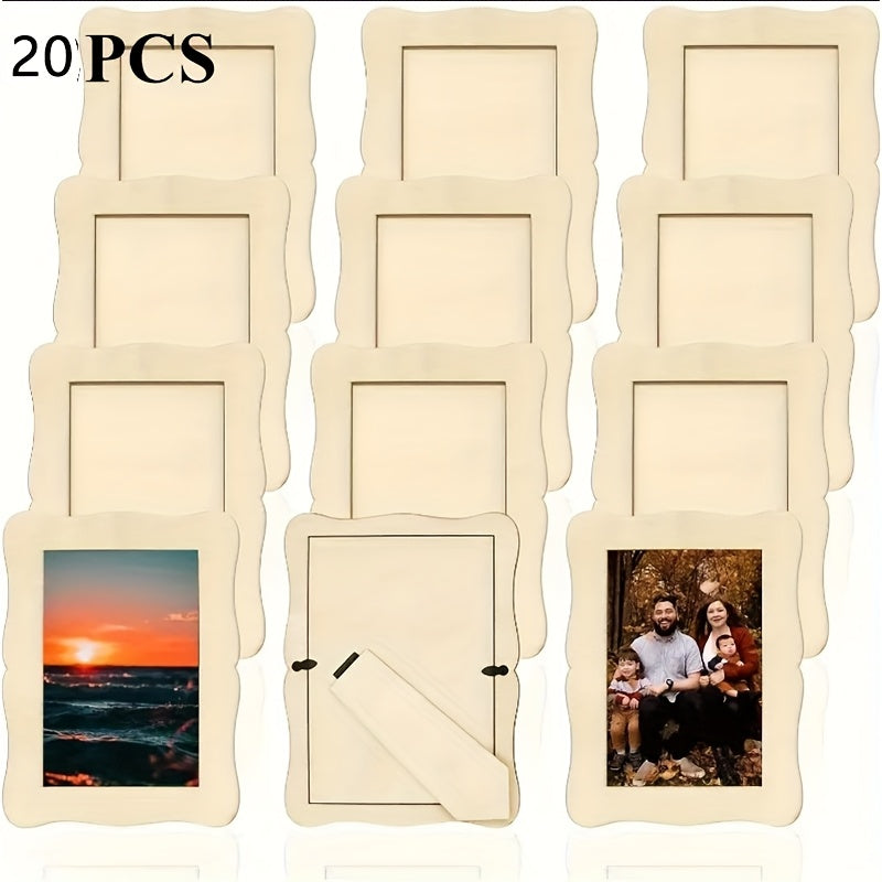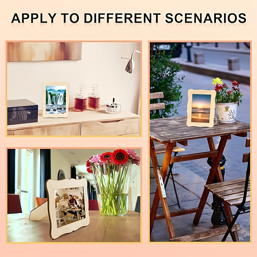 Unfinished Wave-Shaped Wooden Picture Frames for 5.5x7.5 Photos - Natural Solid Wood DIY Craft Frames, Contemporary Rectangular Vertical Design for Painting, Birthdays, Weddings, Home Decor, Wood Pieces for Crafts, Photo Display Frames